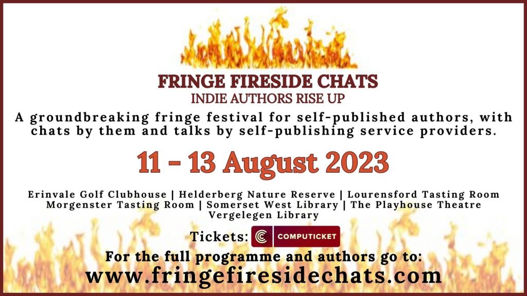 And then: I’ll be at the inaugural Helderberg Book Festival’s Fringe Fireside Chats on 13 August. It’s a festival for local indie authors and I’m hoping it gets some real legs because the more platforms supporting indie authors the better. I’ll also be at Tokai Library next month for one of their Author Talks, and there’s a short UCT course on self-publishing in the pipeline for next year.
