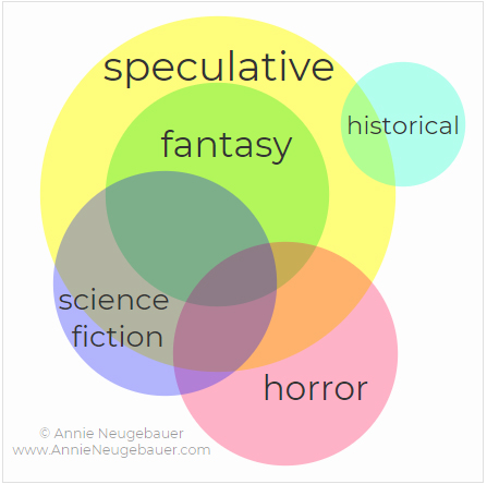Which brings me to this little nugget I found the other day. The term “speculative fiction” is often misunderstood, but author Annie Neugebauer’s got a great post on it here and created this nifty graphic…